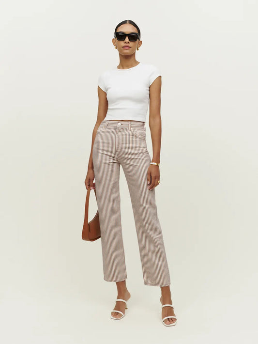 Reformation Cowboy Striped High Rise Straight Jeans size 26