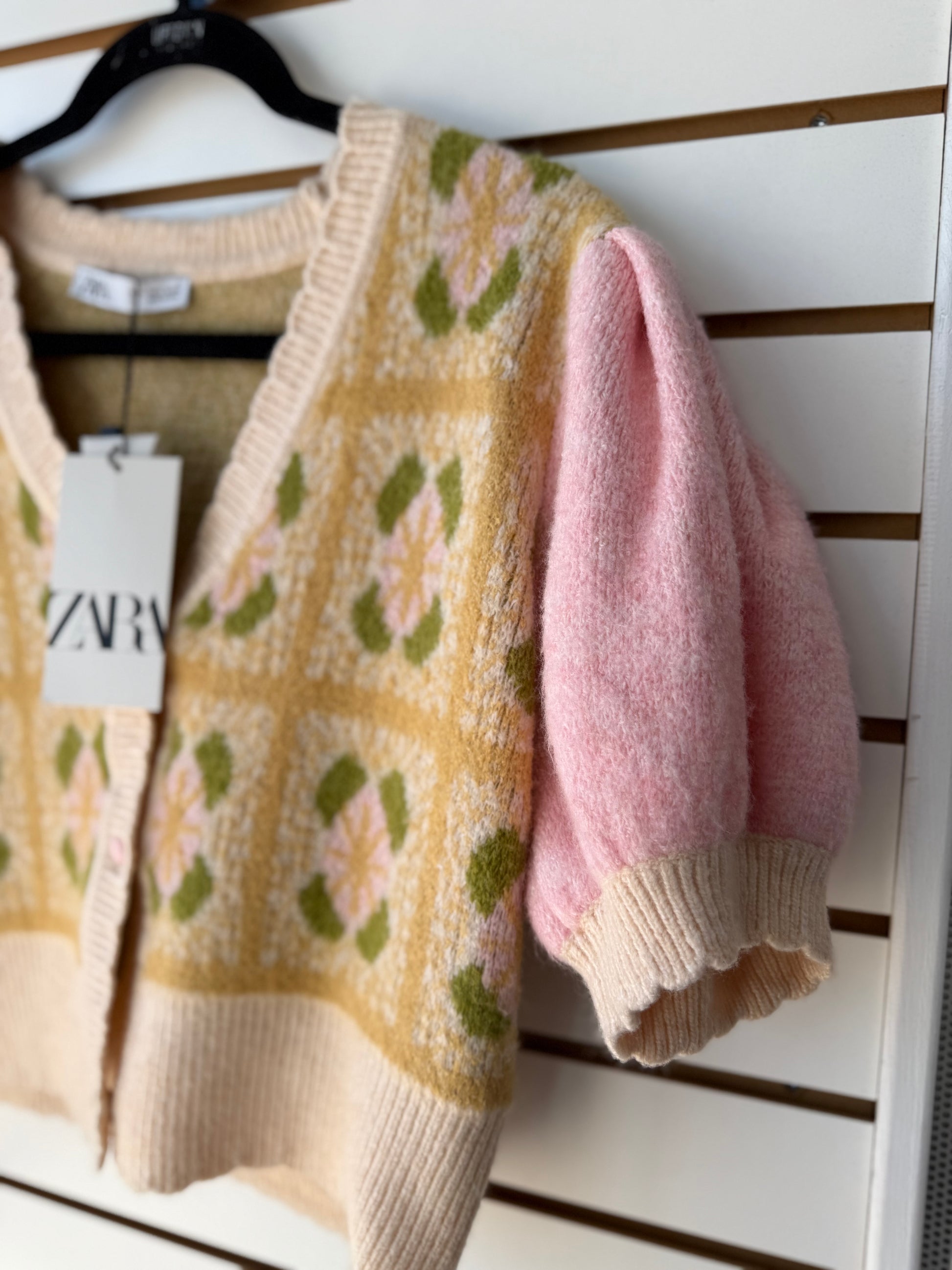 NWT Zara cropped floral sweater size large